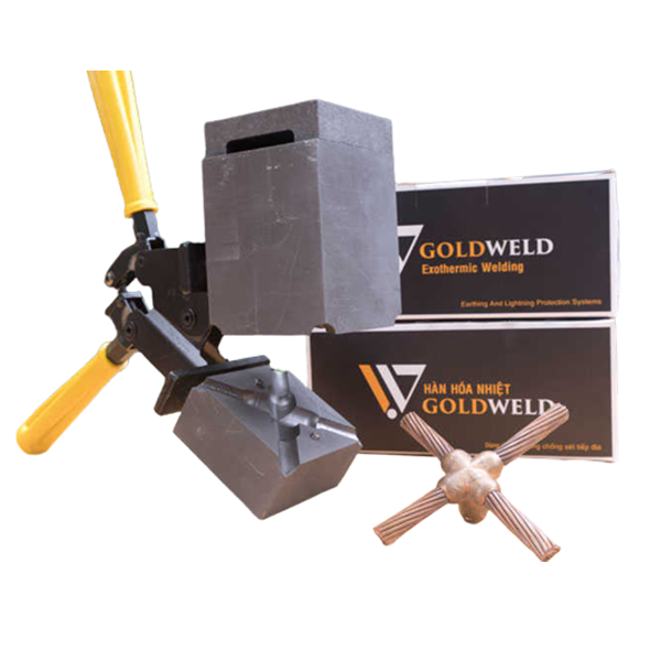 Khuôn hàn hóa nhiệt nối ngã 4 được sử dụng chủ yếu trong hệ thống tiếp địa chống sét, hệ thống tiếp đất hoặc nối dây chống sét, Hàn hóa nhiệt giúp dây thoát sét và cọc tiếp địa kết nối với nhau chắc hơn và không bị ăn mòn.