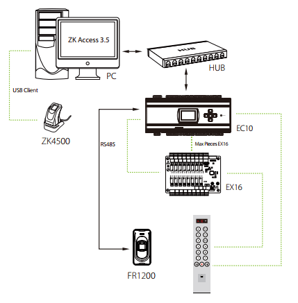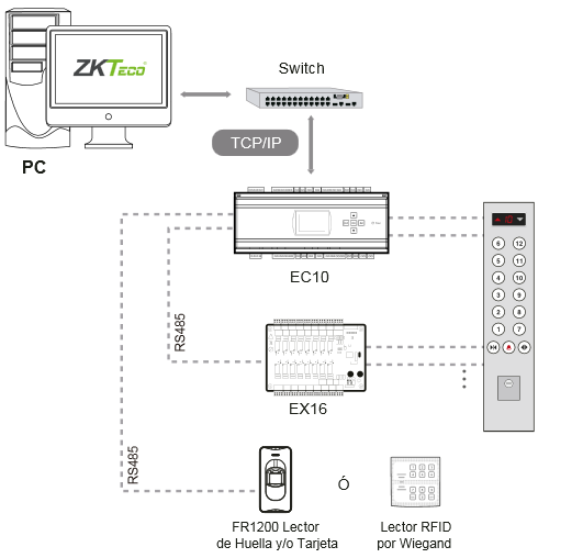 Bộ điều khiển trung tâm EC10 là thiết bị chính. Thiết bị có thể điều khiển 10 tầng.