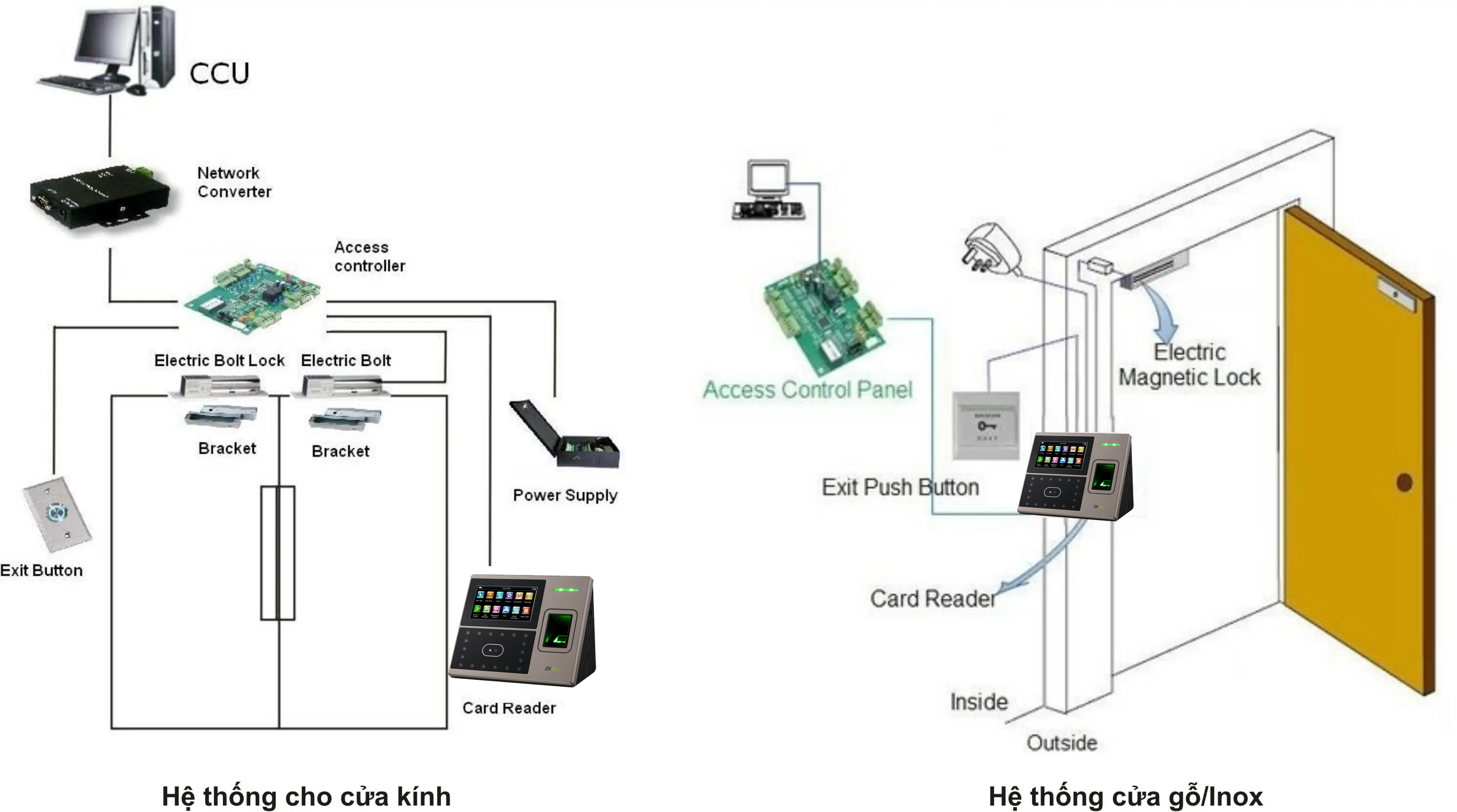 Thành phần của hệ thống kiểm soát cửa ra vào Access Control sử dụng máy chấm công ZKTeco UFACE800