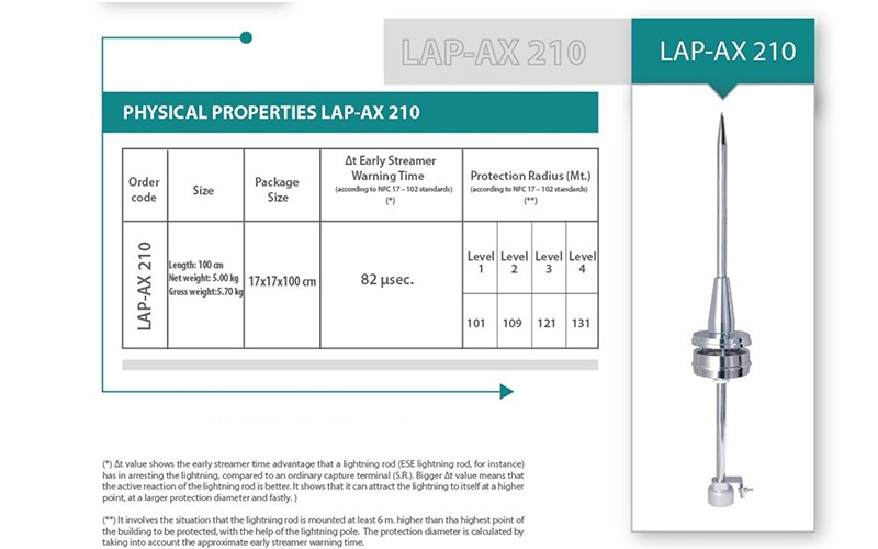 Thông số kỹ thuật chính kim thu sét LIVA AX 210