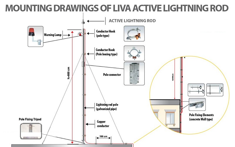 LIVA AX 210 Chủ động phát ra tia tiên đạo đi lên thu đón nặng lượng sét là cách hiểu đơn giản về hoạt động của kim thu sét liva. Sét đánh xuống mặt đất tạo một vùng điện trường mạnh. Luồng điện trường tăng nhanh khi tia tiên đạo của kim thu sét tiến lại gần. Lúc này tia tiên đạo đi lên của kim thu sét tiếp xúc với tia tiên đạo đi xuống của đám mây giông. Điều này xảy ra trước khi các điểm cao khác gần đó phóng lên dòng điện dẫn.