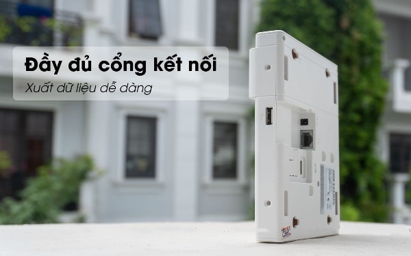 Mặt sau sản phẩm trang bị đầy đủ các cổng kết nối đa dạng: cổng USB, Mạng LAN,… Giúp kết nối nhanh chóng thuận tiện, hỗ trợ truy xuất dữ liệu về máy chủ qua phầm mềm từ xa.