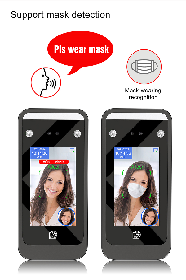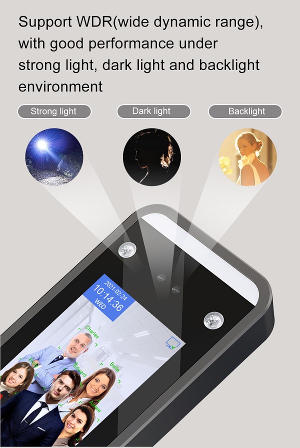 - Phạm vi phát hiện: Khoảng cách nhận dạng khuôn mặt động là 0,5 ~ 3 mét. Khoảng cách nhận diện khuôn mặt trực tiếp là 0,5-1,5 mét