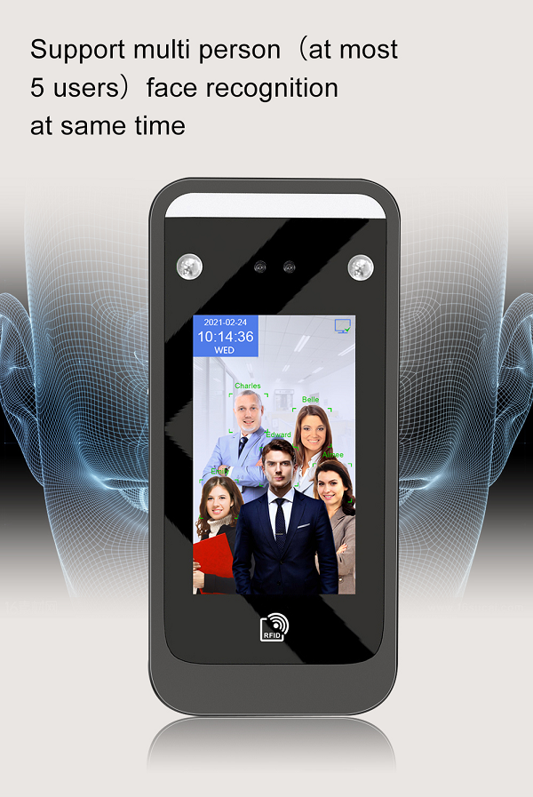 - Phương pháp nhận dạng: Nhận dạng khuôn mặt động, thẻ ID (125khz). Mật khẩu (thẻ IC 135Mhz là tùy chọn)