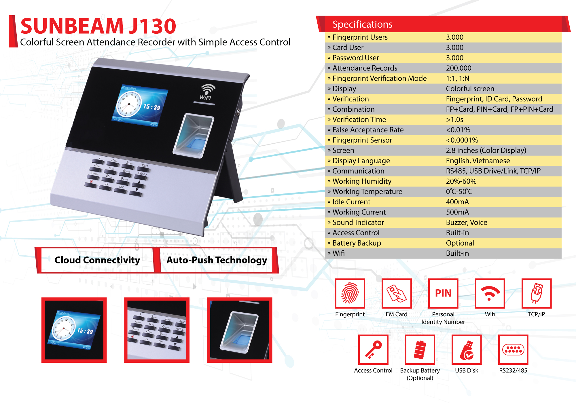 Các tính năng chính của Máy chấm công vân tay Sunbeam J130