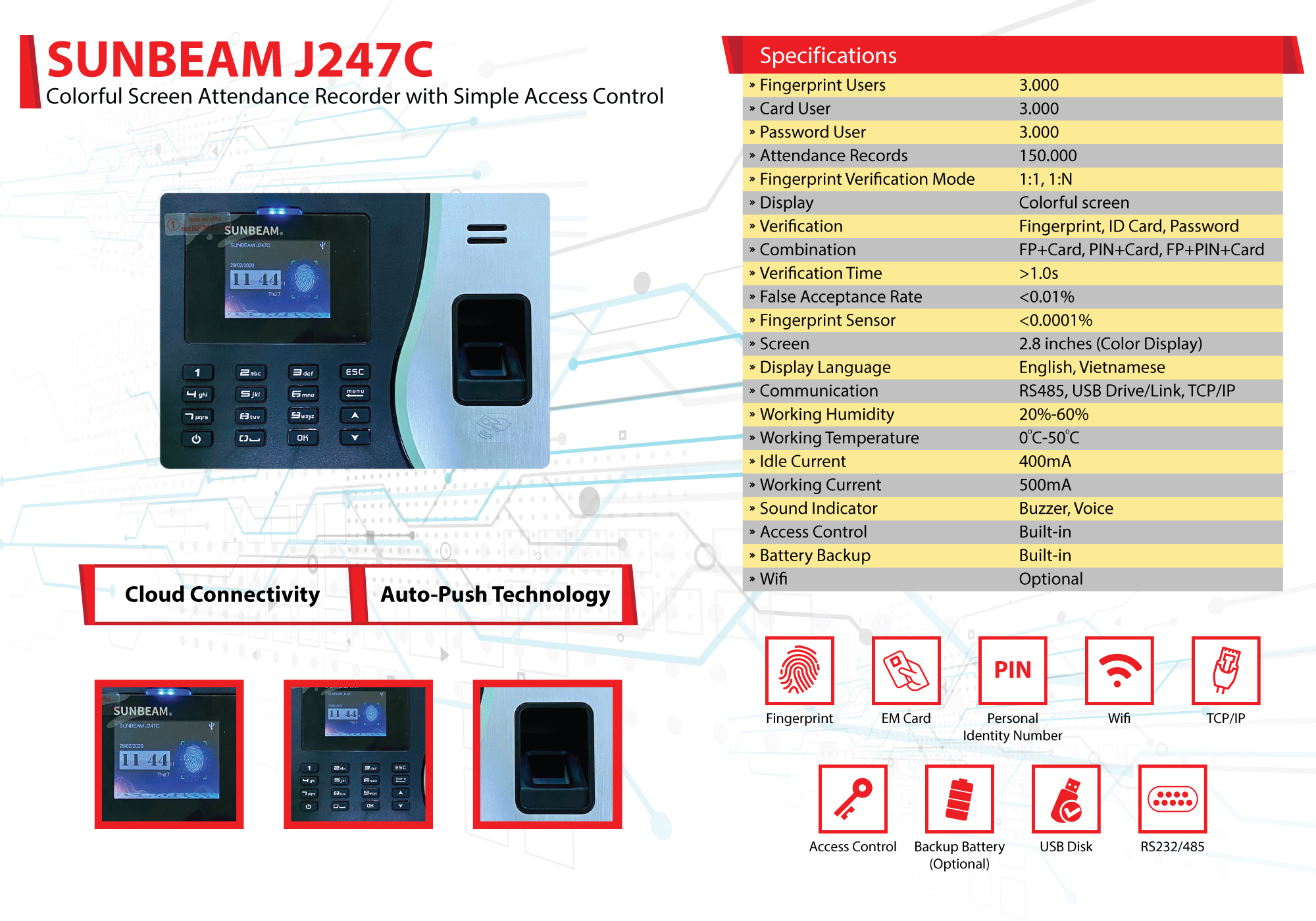 Thông tin về máy chấm công vân tay Sunbeam J247C