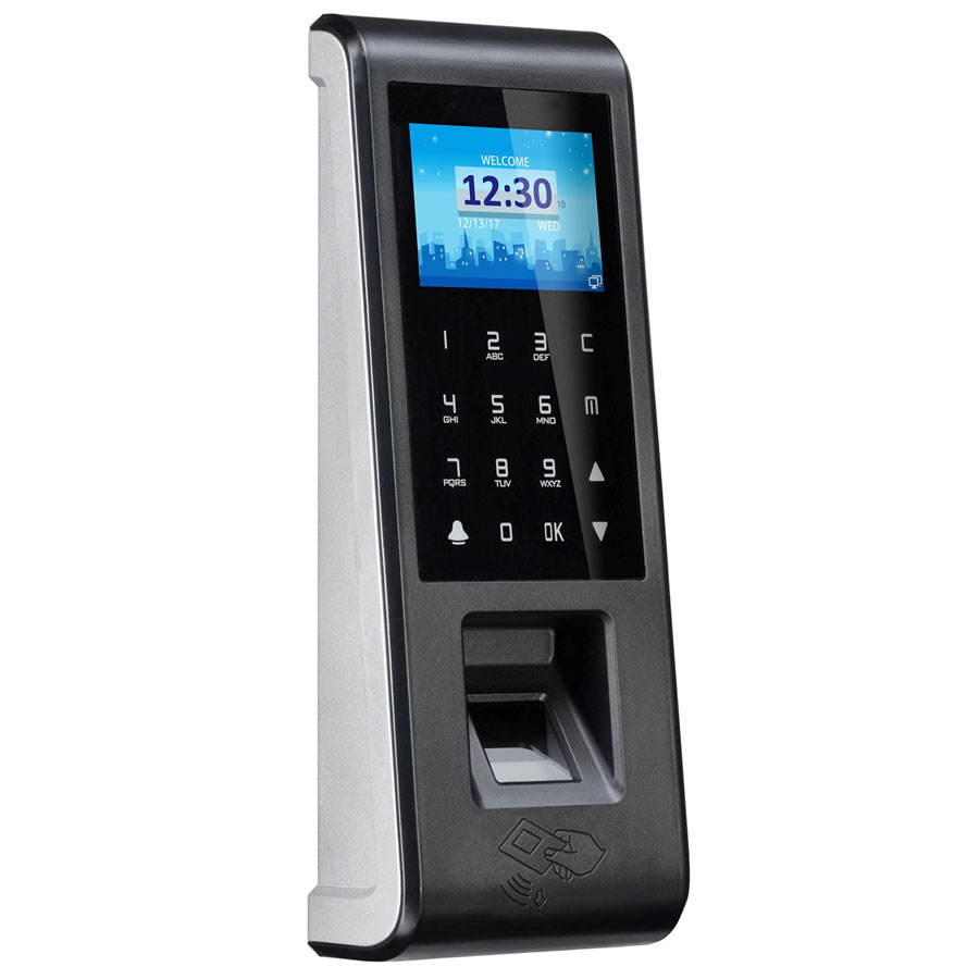 Máy chấm công kết nối với máy tính qua cổng TCP/IP, RS485, USB, U-disk. Kiểu dáng nhỏ gọn, thiết kế đơn giản dễ sử dụng. Màn hình cảm ứng giúp cài đặt các chức năng nhanh chóng.
