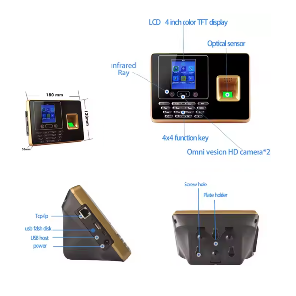 - Tính năng lưu trữ lớn với 300 khuôn mặt 500 vân tay và 500 thẻ