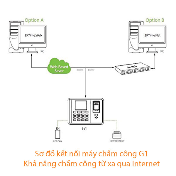 Máy chấm công vân tay thẻ ZKteco G1 là sản phẩm được tích hợp đầy đủ các chức năng như chấm công bằng vân tay và thẻ từ, kiểm soát ra vào, pin dự phòng làm việc được 6 đến 8 giờ sau khi mất điện.