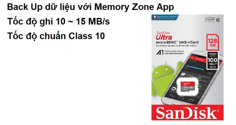 Thẻ nhớ SanDisk Class 10 128GB 100MB/s -Thiết kế bền bỉ, lưu trữ và truyền tải nhanh chóng