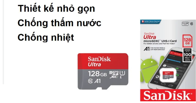 Thẻ nhớ SanDisk Class 10 128GB đến từ thương hiệu nổi tiếng về các thiết bị phụ kiện chất lượng cao Sandisk (USA) sở hữu thiết kế cực kì nhỏ gọn được hoàn thiện từ chất liệu cao cấp. Mặc dù có thiết kế nhỏ gọn nhưng cực kì bền bỉ, chiếc thẻ nhớ này đã trải qua rất nhiều bài thử nghiệm trong môi trường khắc nhiệt.