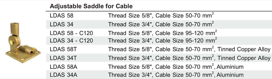 Đế kim thu sét cổ điển LDAS dùng để kết nối kim thu sét với dây dẫn thoát sét là cáp hoặc thanh đồng tròn.