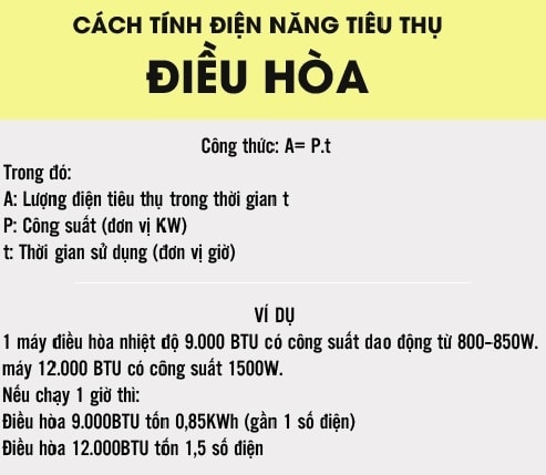Cách tính điện năng tiêu thụ của điều hòa
