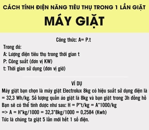 Cách tính điện năng tiêu thụ của máy giặt