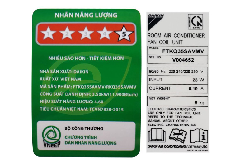 Tem năng lượng xác nhận: Có hình tam giác, có in ngôi sao năng lượng Việt, dùng cho các sản phẩm có hiệu suất đạt mức hoặc trên mức hiệu suất năng lượng tối đa.