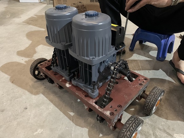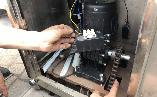 - Bộ điều khiển chuyển động hay còn gọi là motor giúp đóng/mở cổng xếp tự động. Bộ Motor cổng xếp có công suất 370W, dùng dòng điện 220V xoay chiều, dùng để điều khiển đóng mở từ xa cho cổng xếp điện.