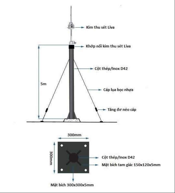 | 3 | Cột đỡ kim inox D48 thu về D42 L = 5M + Bộ chân đế | Sét Toàn Cầu | Cái | 1,00 | ||