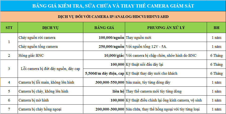 - Chúng tôi trân trọng gửi đến quý khách hàng báo giá dịch vụ sửa chữa camera