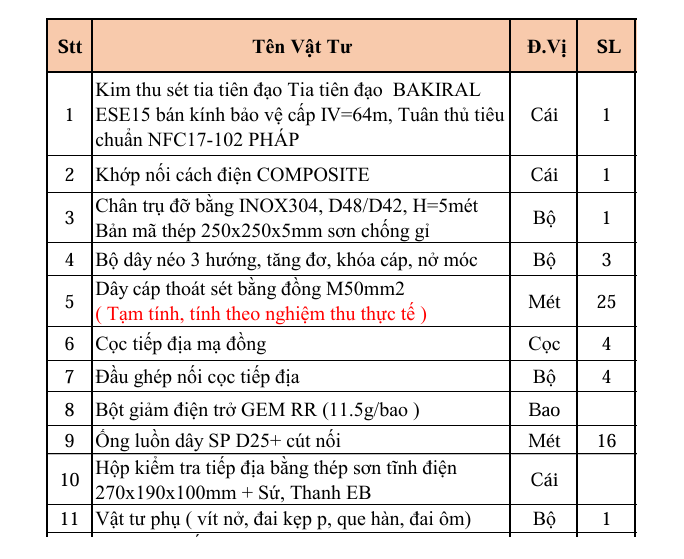 Tham Khảo >>> Vật Tư Chống Sét Cập Nhật Mới Nhất