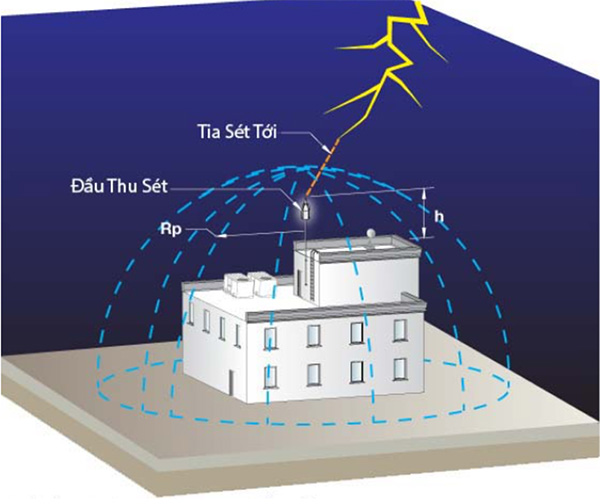 3. Lựa chọn kim thu sét: theo diện tích và chiều cao của tòa nhà (tính ra kim có bán kính bảo vệ phù hợp) và ngân sách của dự án