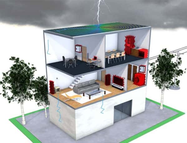 Khi tia sét đánh gần một tòa nhà, thậm chí là có biện pháp bảo vệ, thì nó vẫn có thể di chuyển vào bên trong nhà qua đường dây điện kết nối trực tiếp với bảng chuyển mạch.