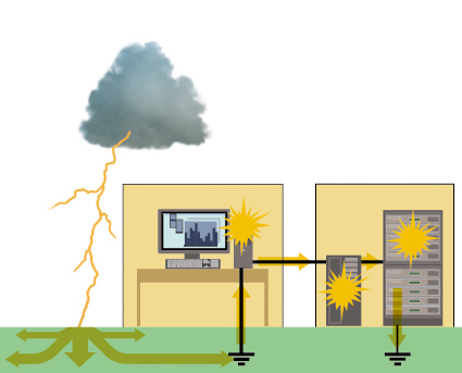 Khi tia sét đánh gần một tòa nhà không được bảo vệ, nó có thể di chuyển vào bên trong qua đường dây điện kết nối trực tiếp với bảng chuyển mạch.