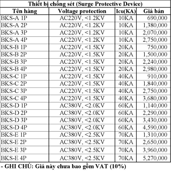 Bảng Báo Giá Thiết Bị Chống Sét Lan Truyền: