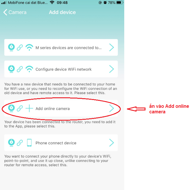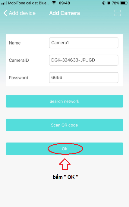 Bước 3 : Sau khi kết nối điện thoại vào Wifi của camera,