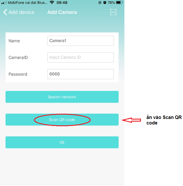 Bước 6 : Quét Mã " QR " trên camera để cài đặt