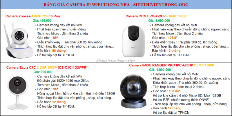 - Quý khách tham khảo thêm các dòng camera không dây IP Wifi khác Tại Đây