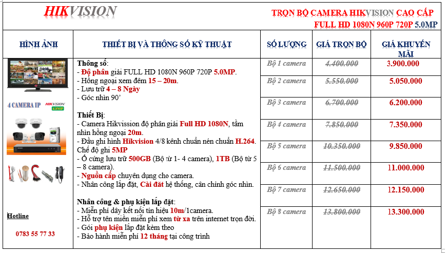 3. Bảng giá lắp đặt camera trọn bộ ở Hà Nội