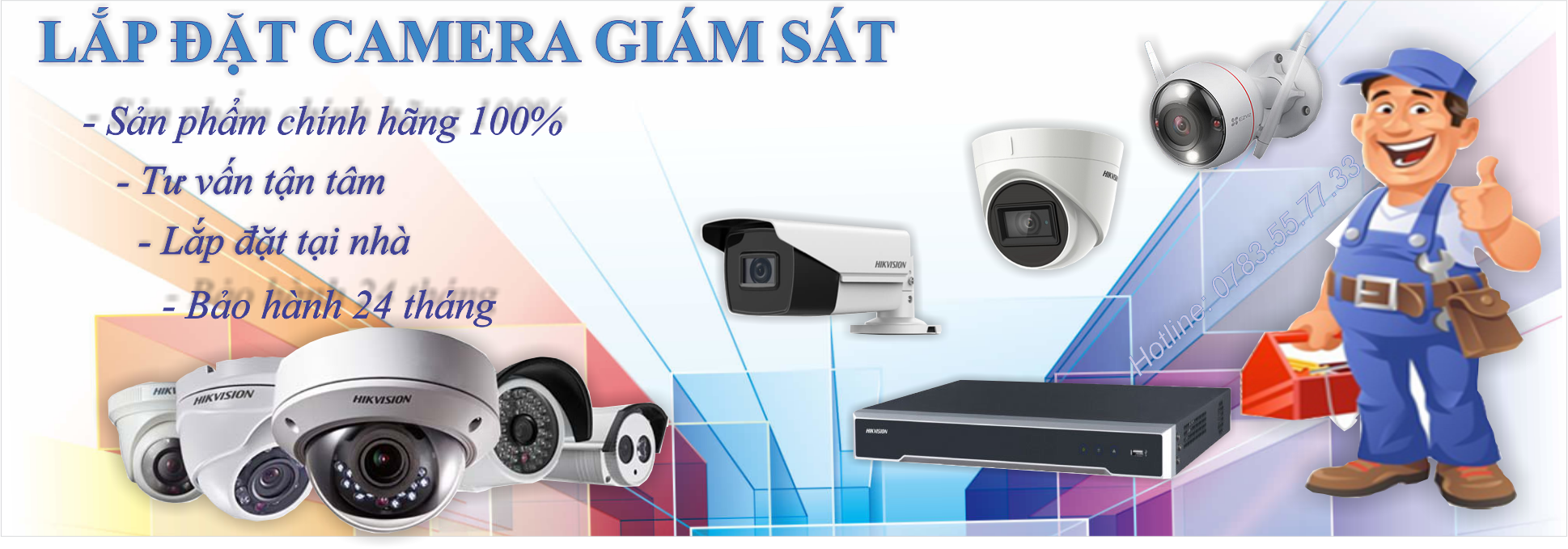 - Khách hàng có nhu cầu tư vấn giải pháp dịch vụ lắp đặt camera dành cho gia đình, văn phòng làm việc, cửa hàng, cơ quan, nhà xưởng ... hãy liên hệ với chúng tôi. Chúng tôi sẽ tư vấn giúp quý khách chọn được sản phẩm phù hợp với mục đích và nhu cầu đa dạng. Ngoài ra quý khách hàng có nhu cầu bảo dưỡng, sửa chữa camera chính hãng vui lòng liên hệ. Chúng tôi hỗ trợ tư vấn miễn phí 24/7 Hotline: 0783.55.77.33