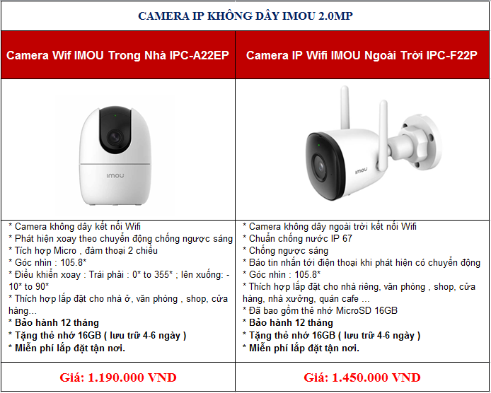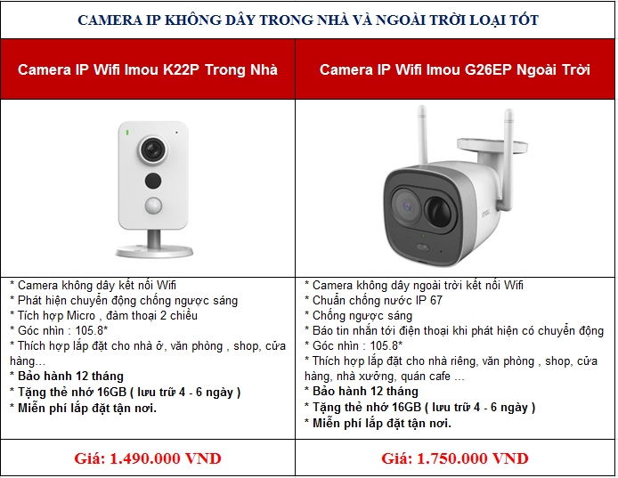 Bảng giá một số loại camera IP Wifi không dây