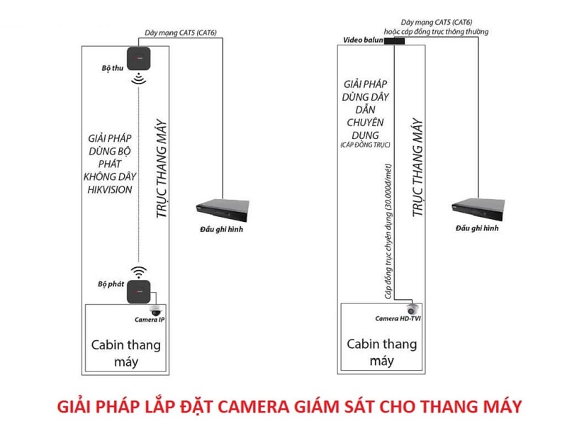 b. Lắp đặt camera cho thang máy sử dụng bộ thu phát không dây