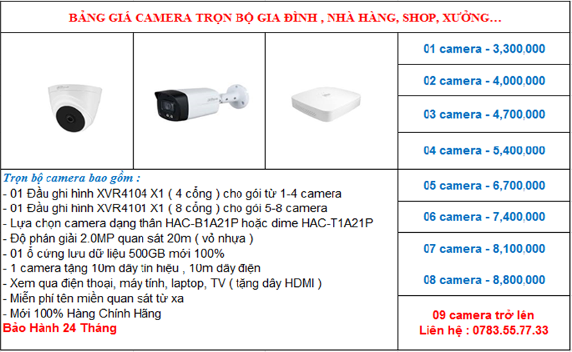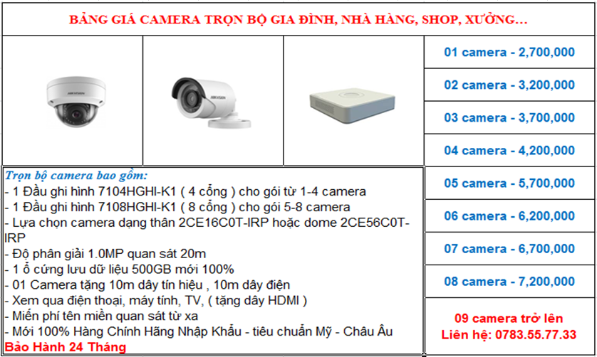 Quý khách hàng hãy liên hệ với chúng tôi để được tư vấn và báo giá lắp đặt camera với giá tốt nhất, cùng nhiều chương trình khuyến mãi hấp dẫn.