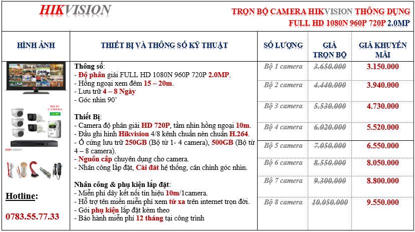 Bộ camera thông dụng với đầy đủ chưc năng hồng ngoại xem đêm 10 - 15m, chất lượng ổn định, hỗ trợ xem từ xa, lưu trữ bằng ổ cứng chuyên dụng, chất lượng Full HD 1080 960P 720P, phù hợp lắp đặt cho gia đình - văn phòng - khách sạn - cửa hàng - quán ăn.