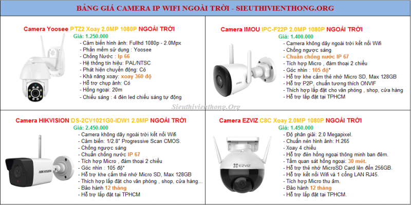 Bảng giá camera Wifi dùng cho nhà xưởng