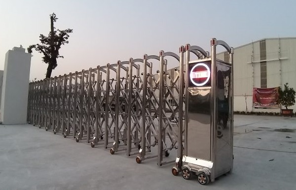 c. Cổng xếp tự động làm từ hợp kim nhôm và inox