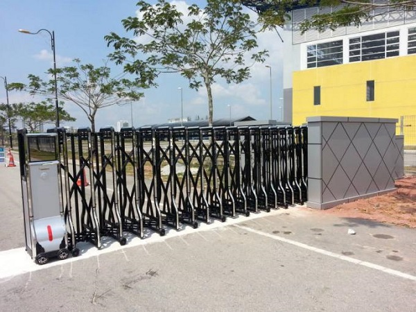 - Cổng xếp được trang bị hệ thống cảm biến bằng tia hồng ngoại nên sẽ tự động dừng lại khi có chướng ngại vật phía trước nhằm mục đích đảm bảo an toàn cho con người cũng như phương tiện di chuyển qua.