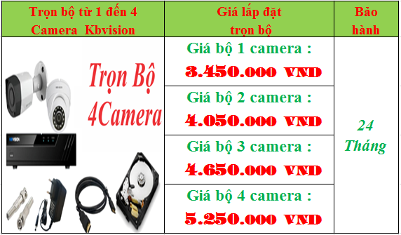 Bảng giá trọn bộ từ 1 đến 4 camera Kbvision giá rẻ dành cho nhà riêng , cửa tiệm, trường mần non: